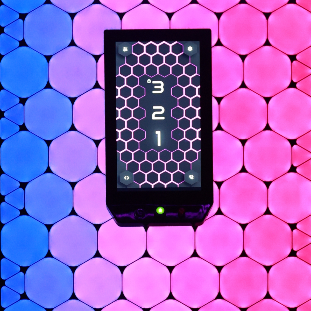Teknologi lighting hexagonal modular dari Nanoleaf menghadirkan panel belakang lift layaknya kanvas hidup. Setiap heksagon memancarkan warna cerah dengan tampilan cahaya dinamis yang responsif terhadap sentuhan maupun ritme musik pilihan Anda